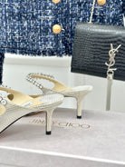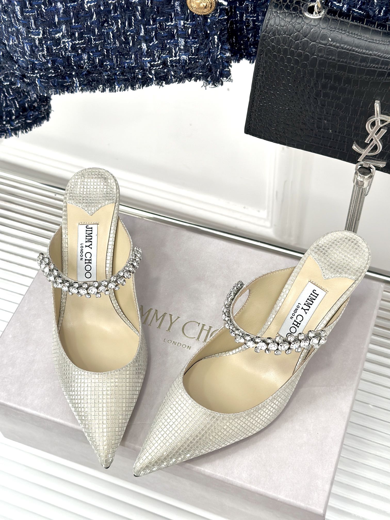 Jimmy Bing 65mm In Ivory White Stone Studded Cowhide Mules 593192