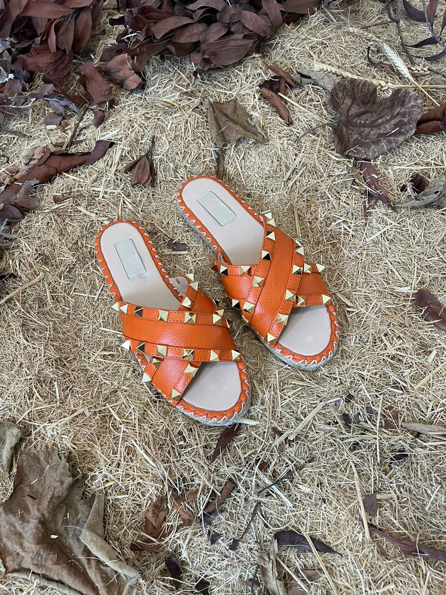 Rockstud Crisscross Espadrilles 20mm Sandal Wedges Orange