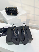 SL Cassandra Croc-Embossed Thong Sandals Black Leather