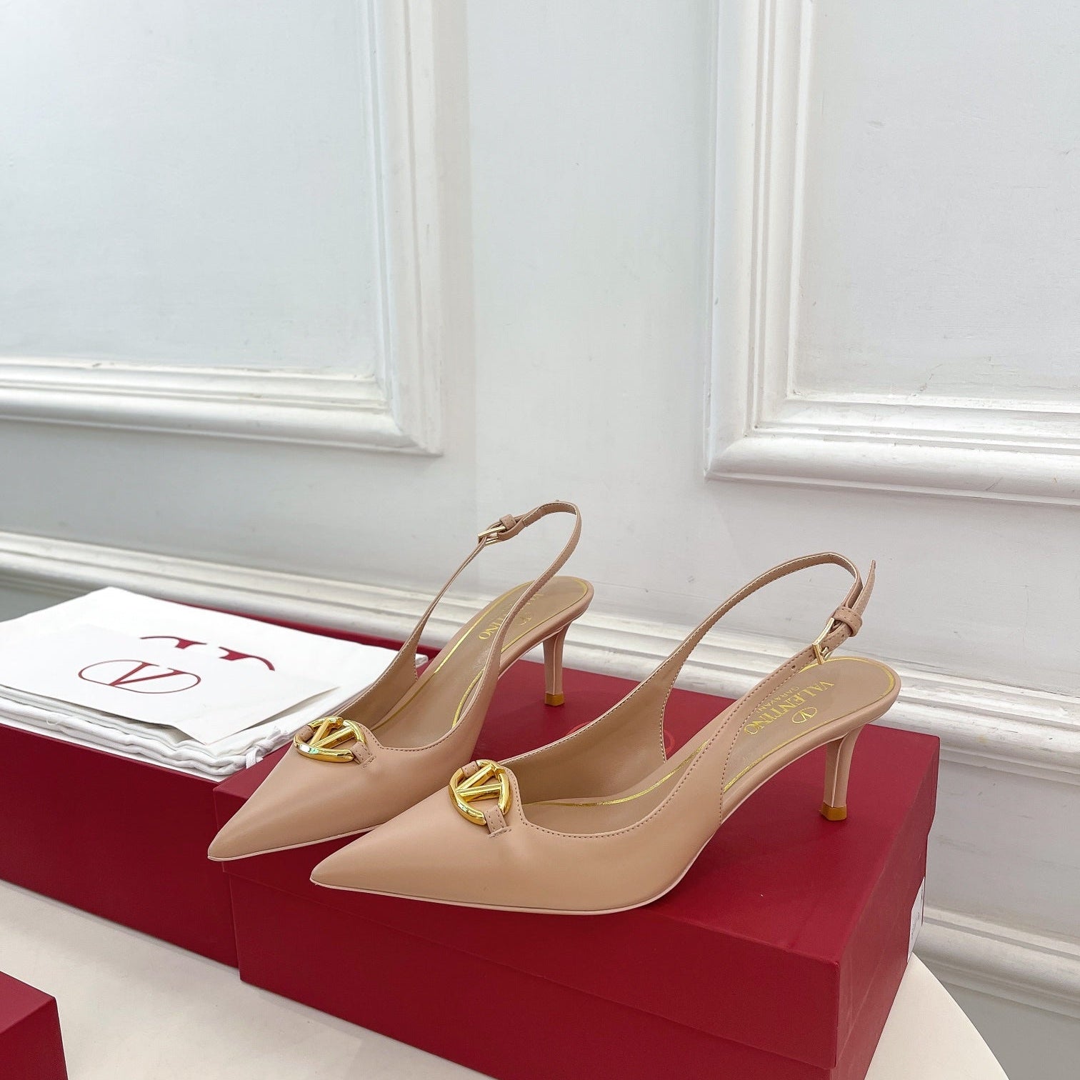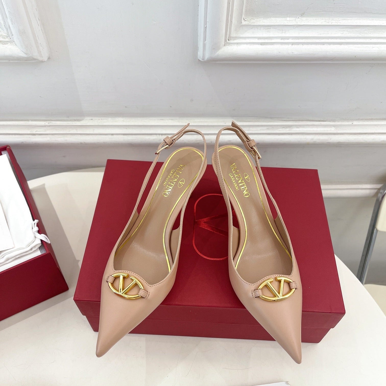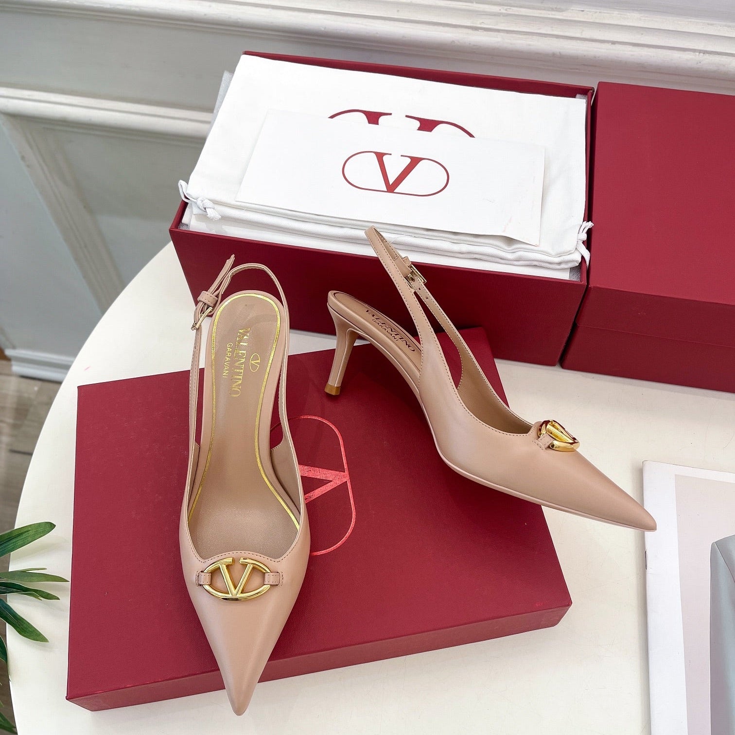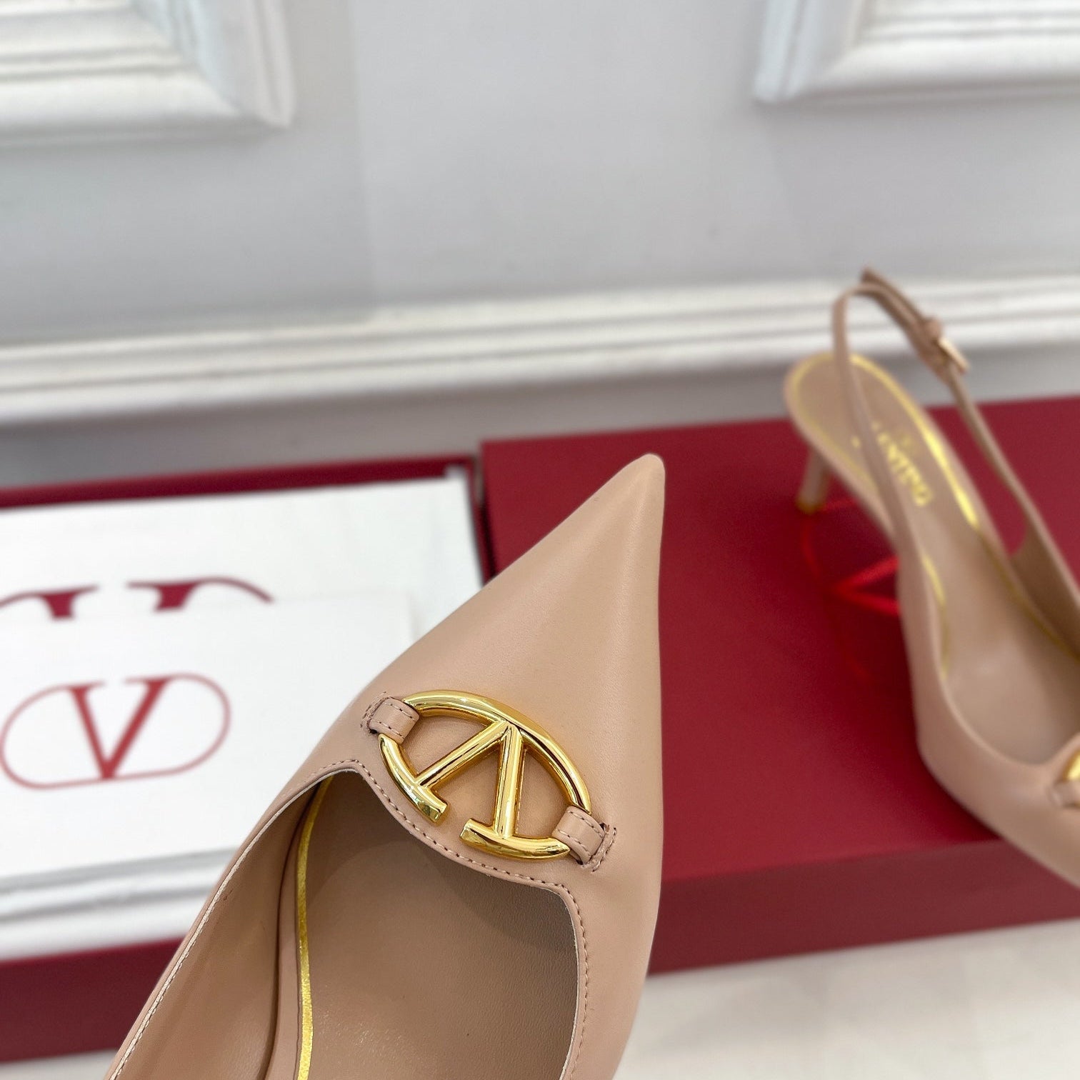 VLOGO SLINGBACK PUMP IN LIGHT GOLD CALFSKIN LEATHER