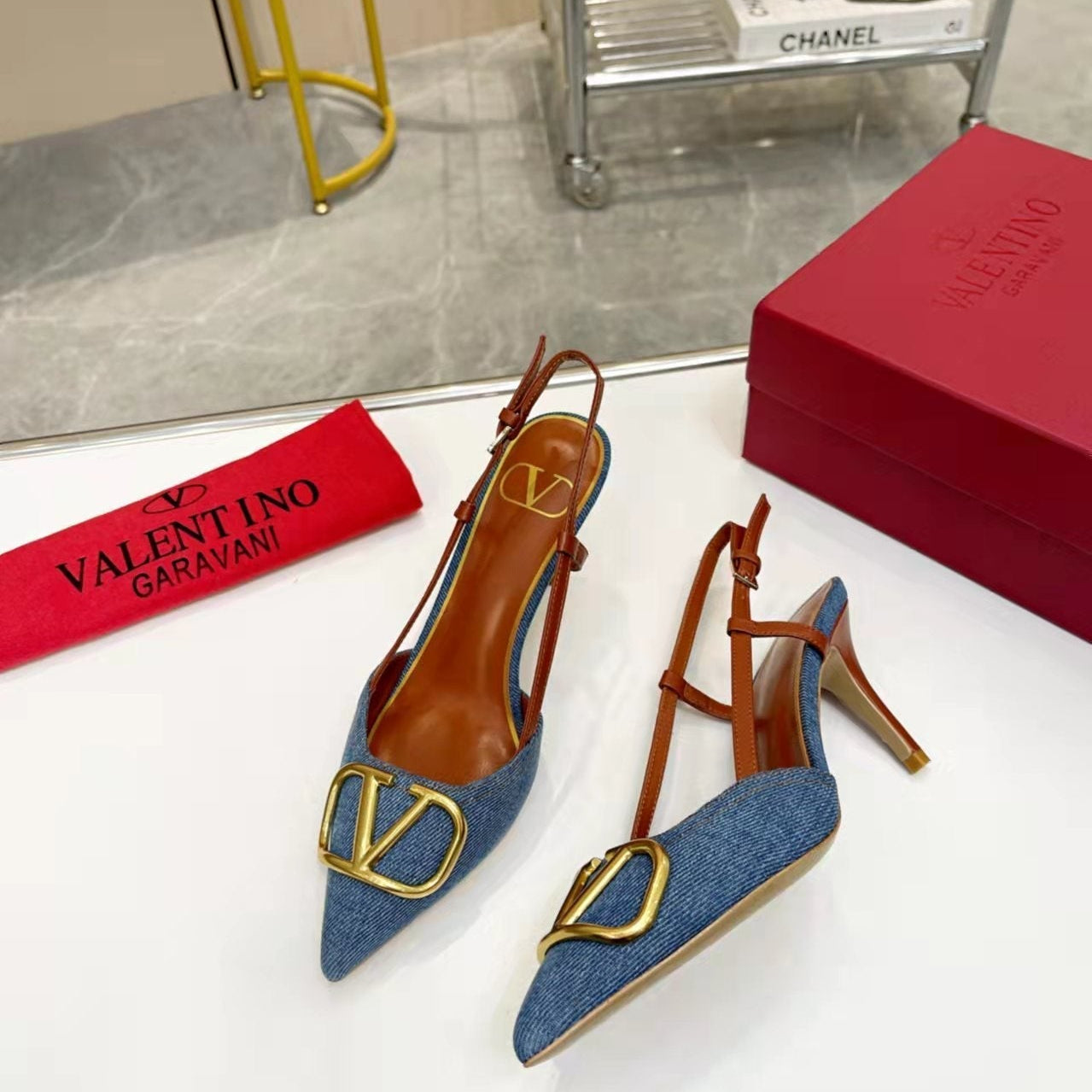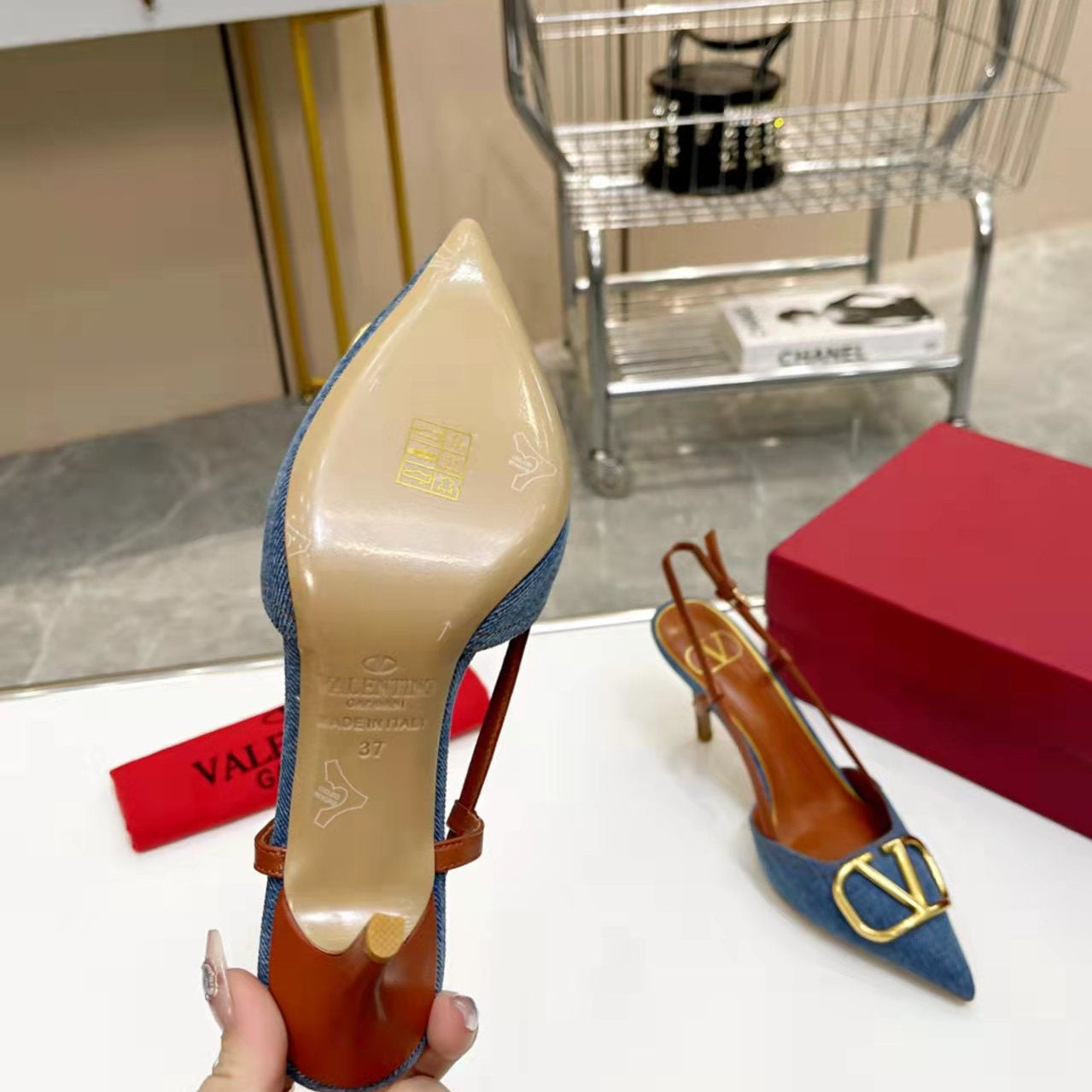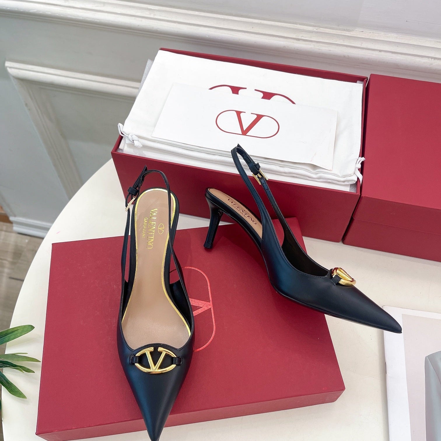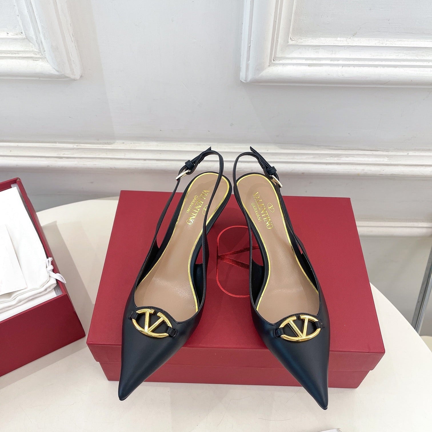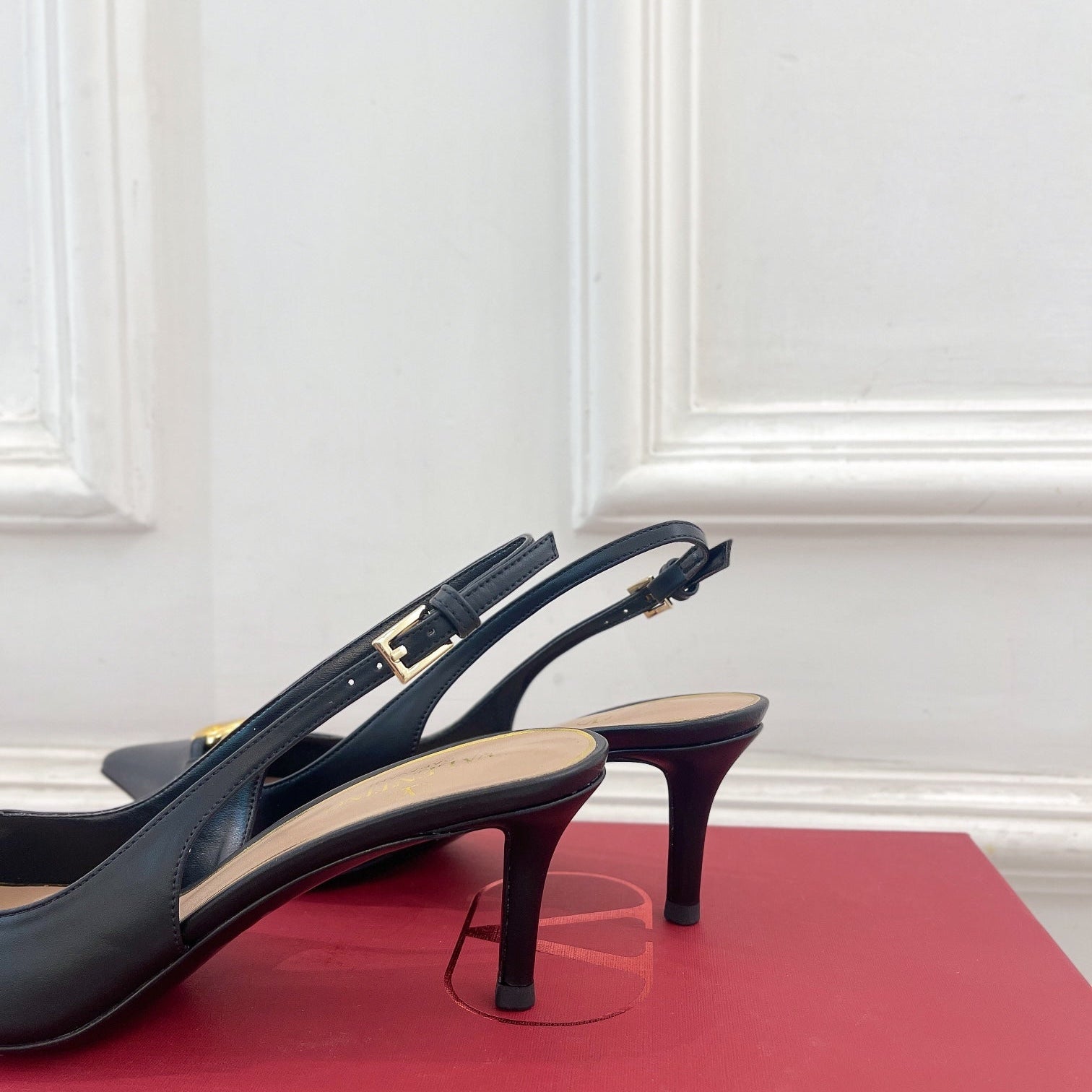 VLOGO SLINGBACK PUMP IN LIGHT GOLD CALFSKIN LEATHER