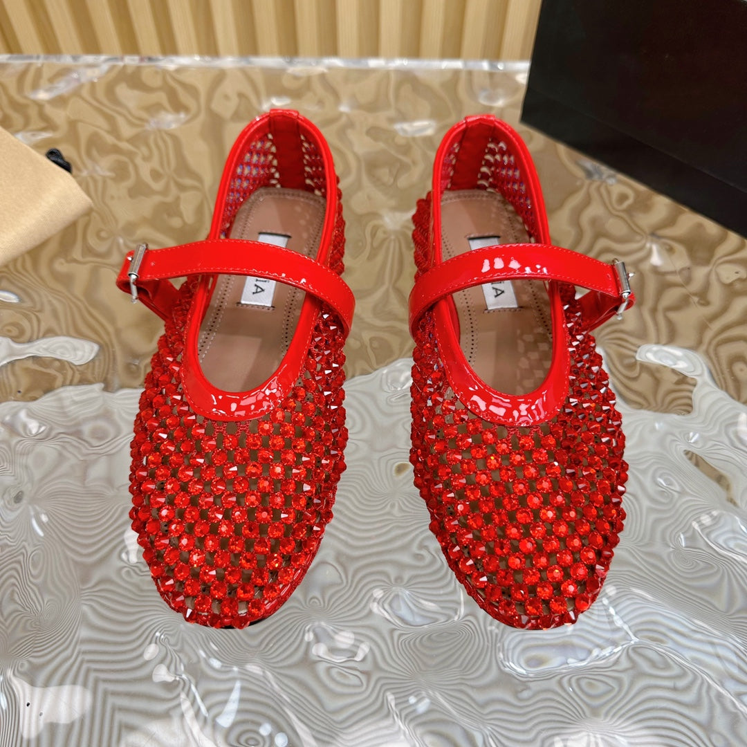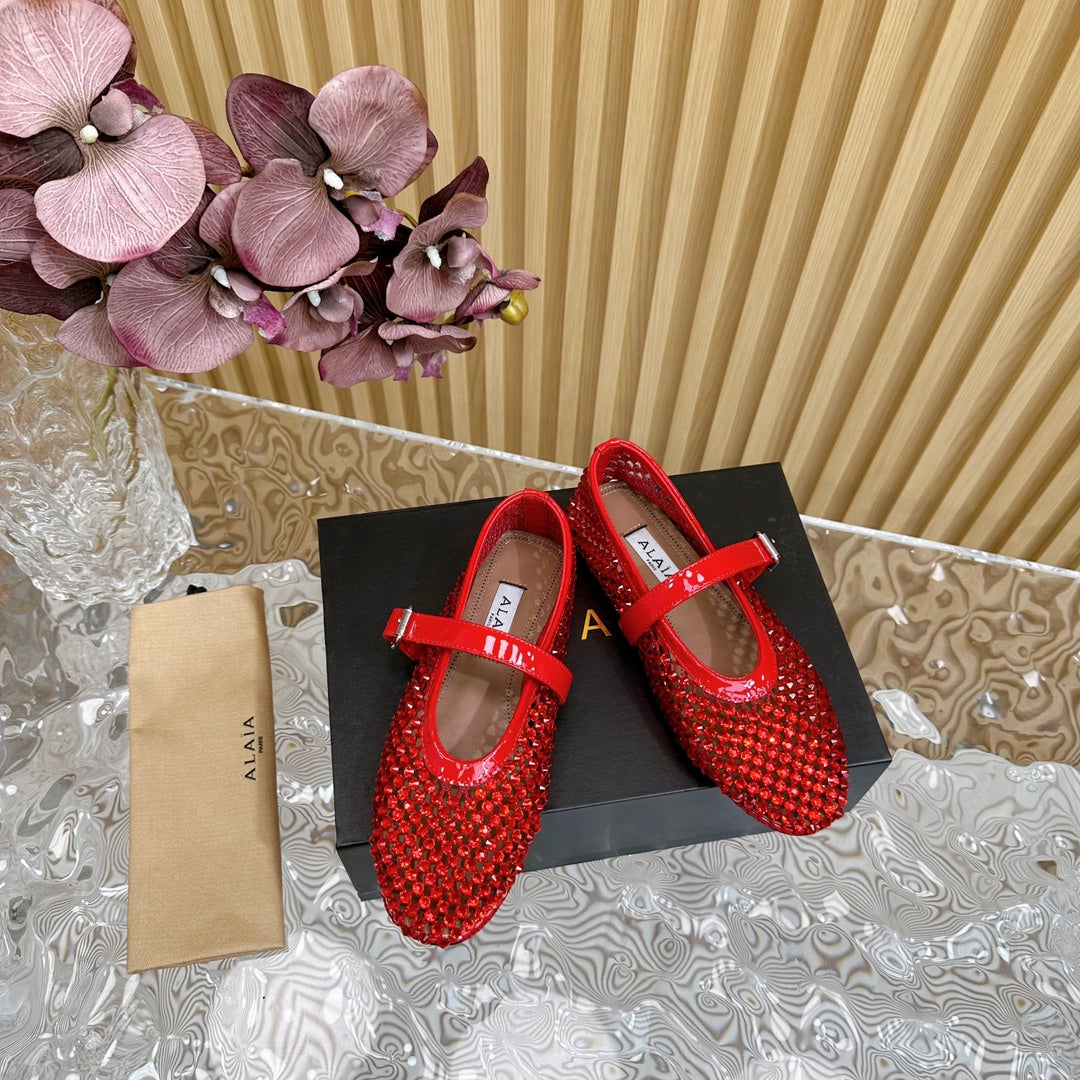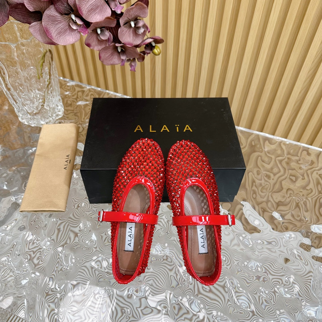 alaia ballet flat fishnet red lambskin