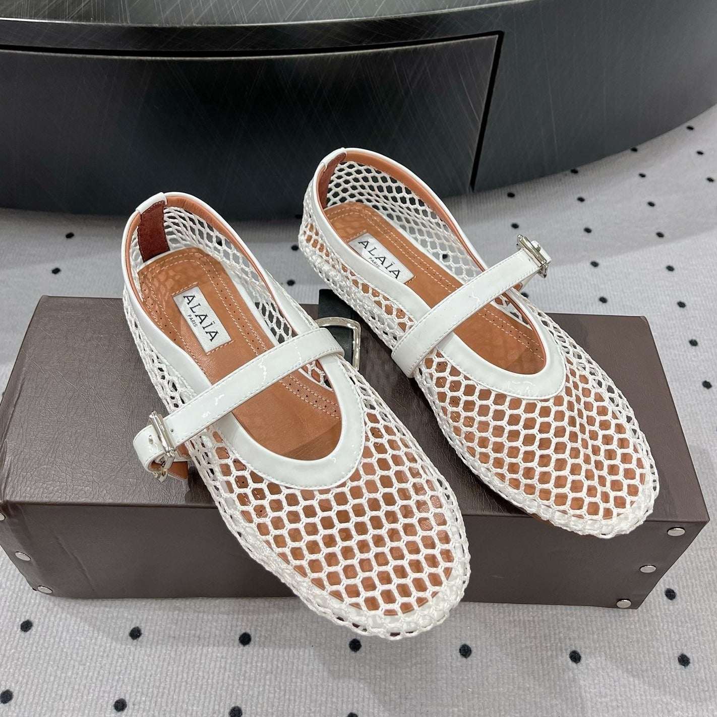 alaia ballet flat fishnet white lambskin