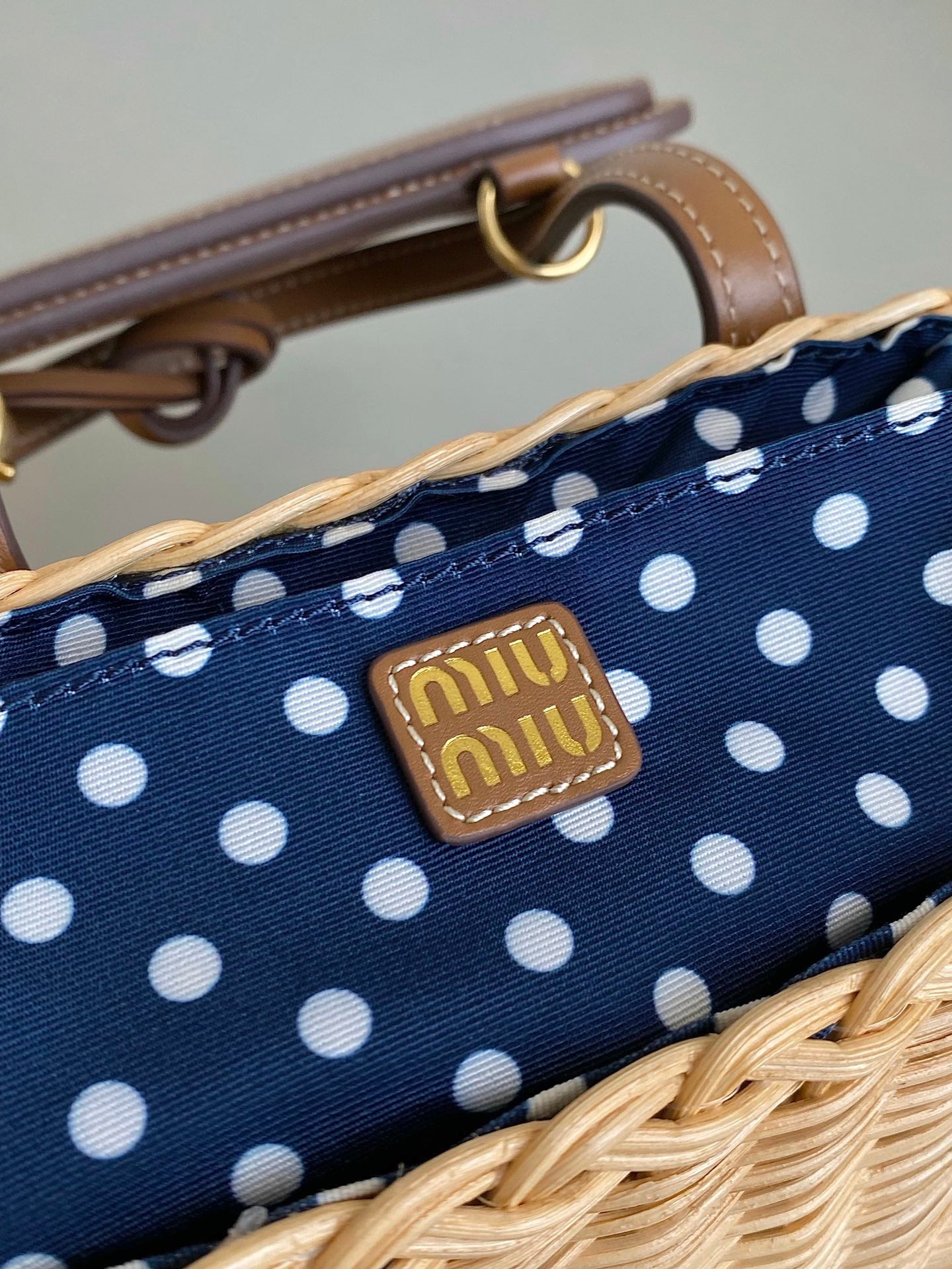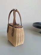 BASKET 20 BAG IN BROWN BEIGE WICKER AND LEATHER