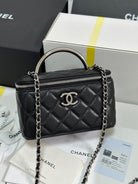 CC 25P Vanity Case 17cm Black Leather Silver Hardware 243469