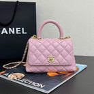 Coco Handle Flap Bag 19cm Pink Grained Calfskin Gold Hardware