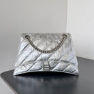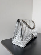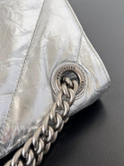 CRUSH CHAINED BAG 32 IN SILVER METALLIC QUILTED CRUSHED CALFSKIN