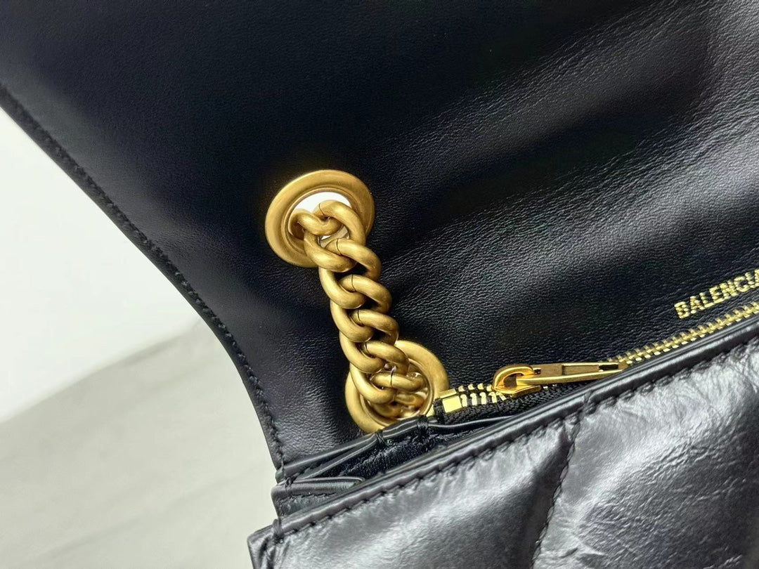 CRUSH SMALL CHAIN BAG 25 IN BLACK QUILTED CRUSHED CALFSKIN GOLD HARDWARE