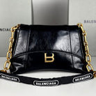 DOWNTOWN SHOULDER BAG 29 IN BLACK WAXED SHEEPSKIN GOLD HARDWARE