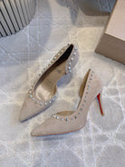 CL Irishell 85 Studded d'Orsay Pumps Cream Suede 177131
