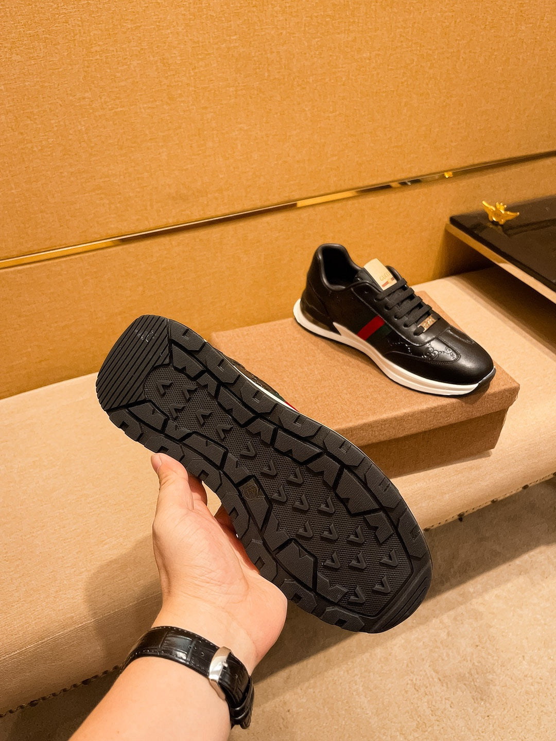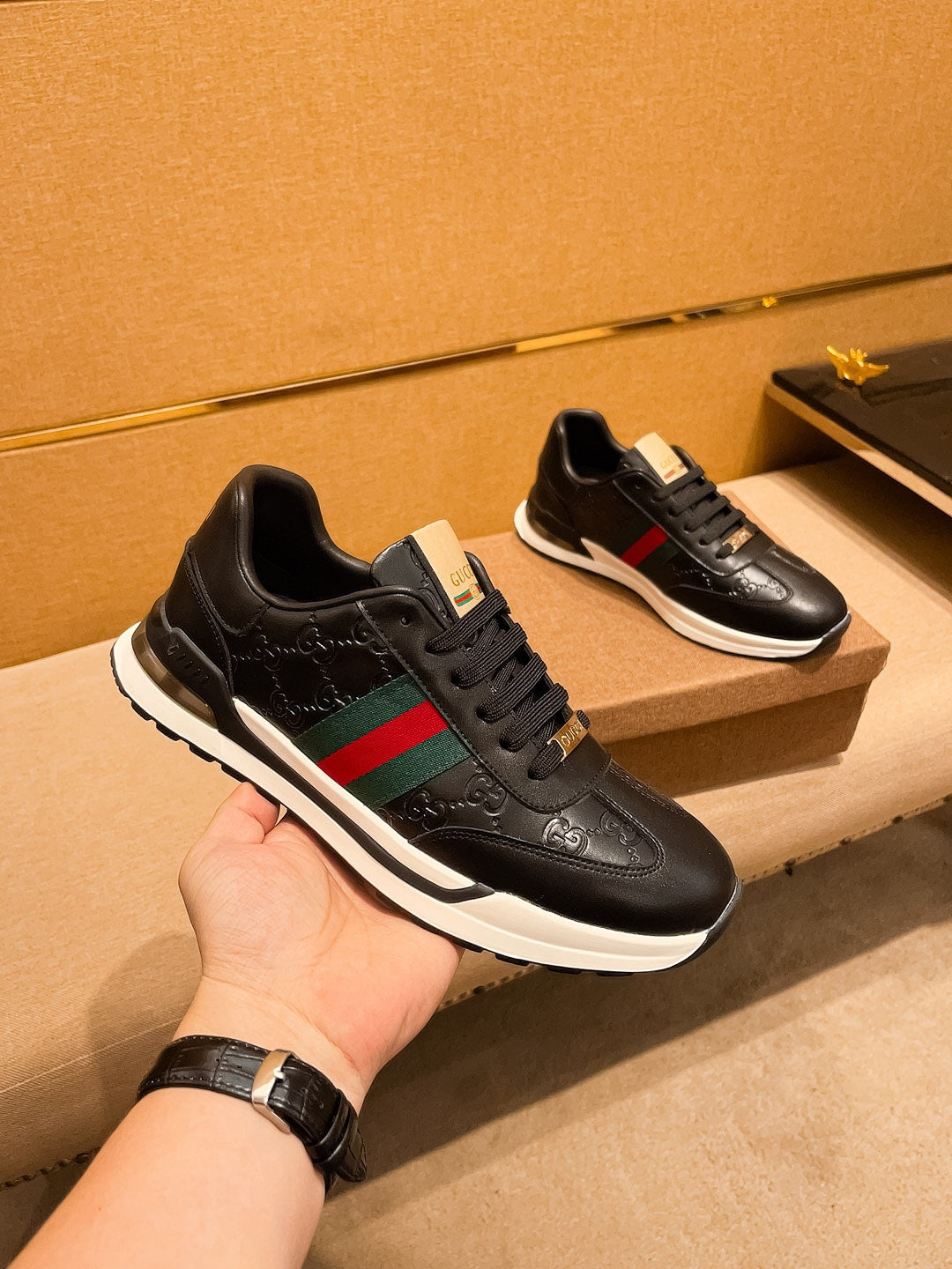 GG Men's ACE Sneaker Black Cowhide 108038