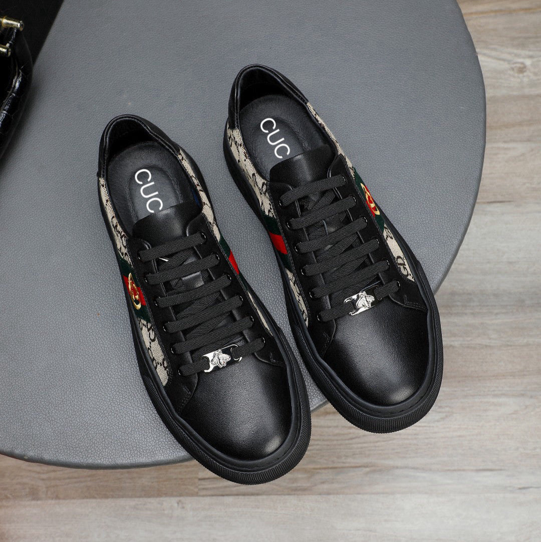 GG Men's Ace Sneaker Brown Black Print Fabric 522634