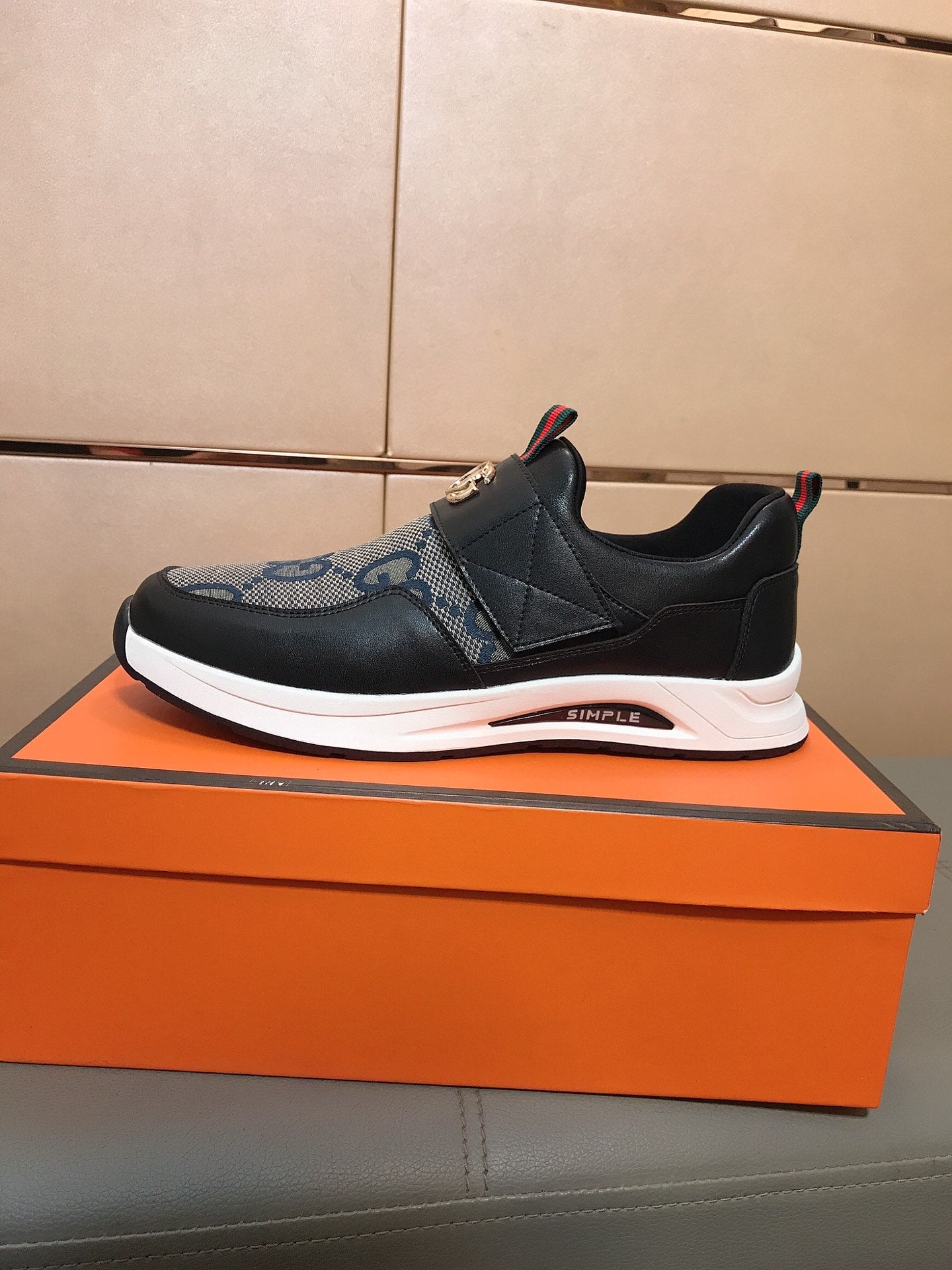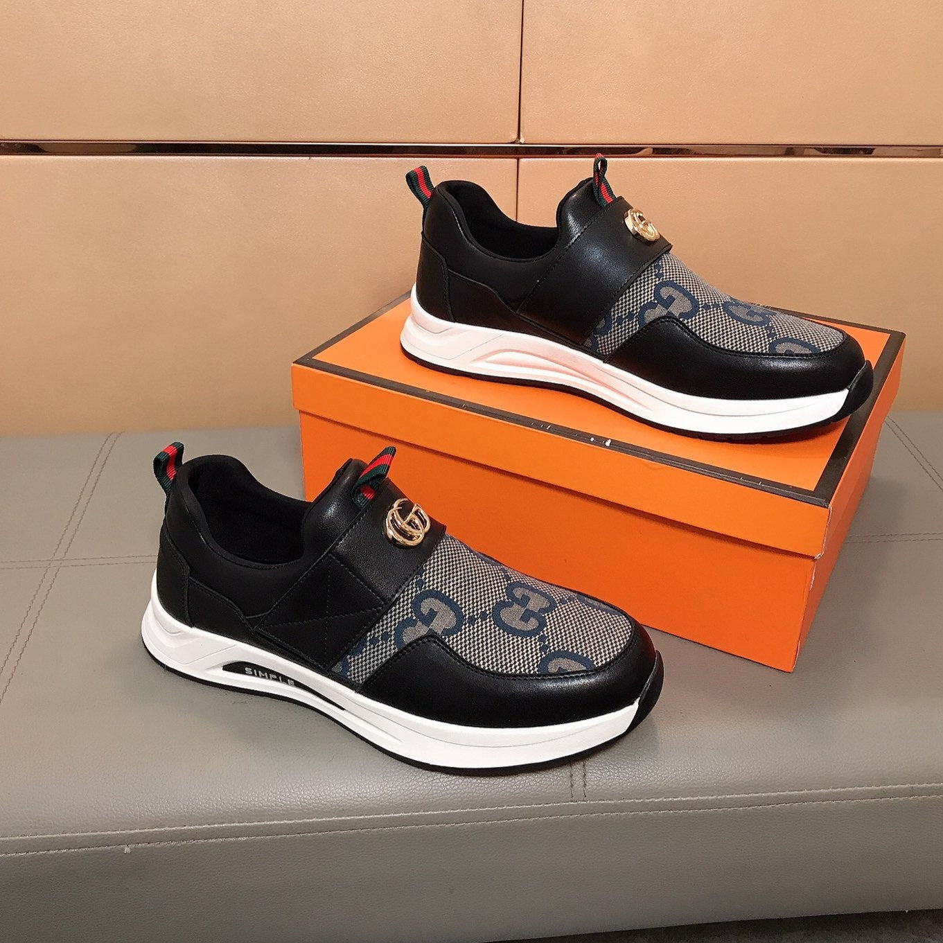 GG Men's Slip on Black Blue Cowhide Canvas 530403