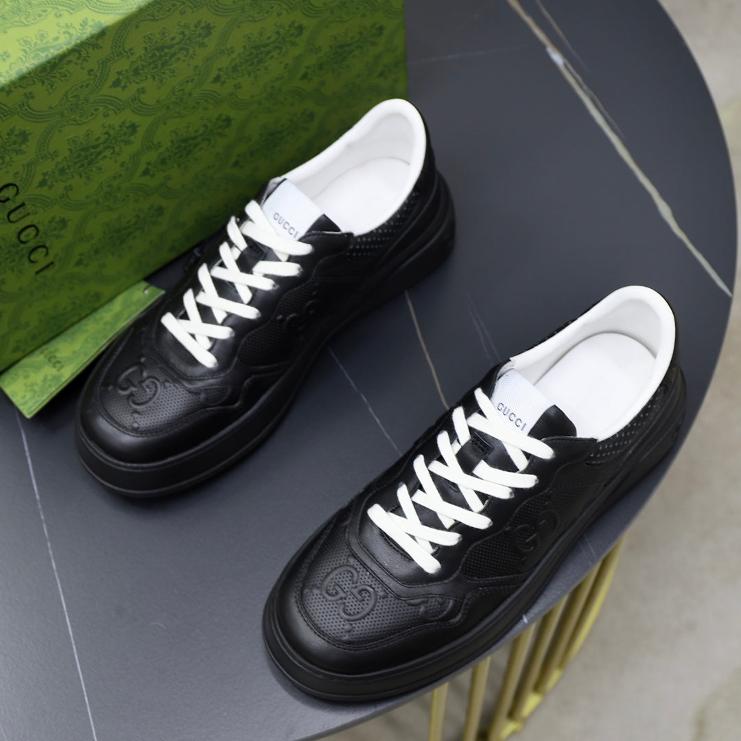 GG Men's Sneaker Black Cowhide Embossed 523163
