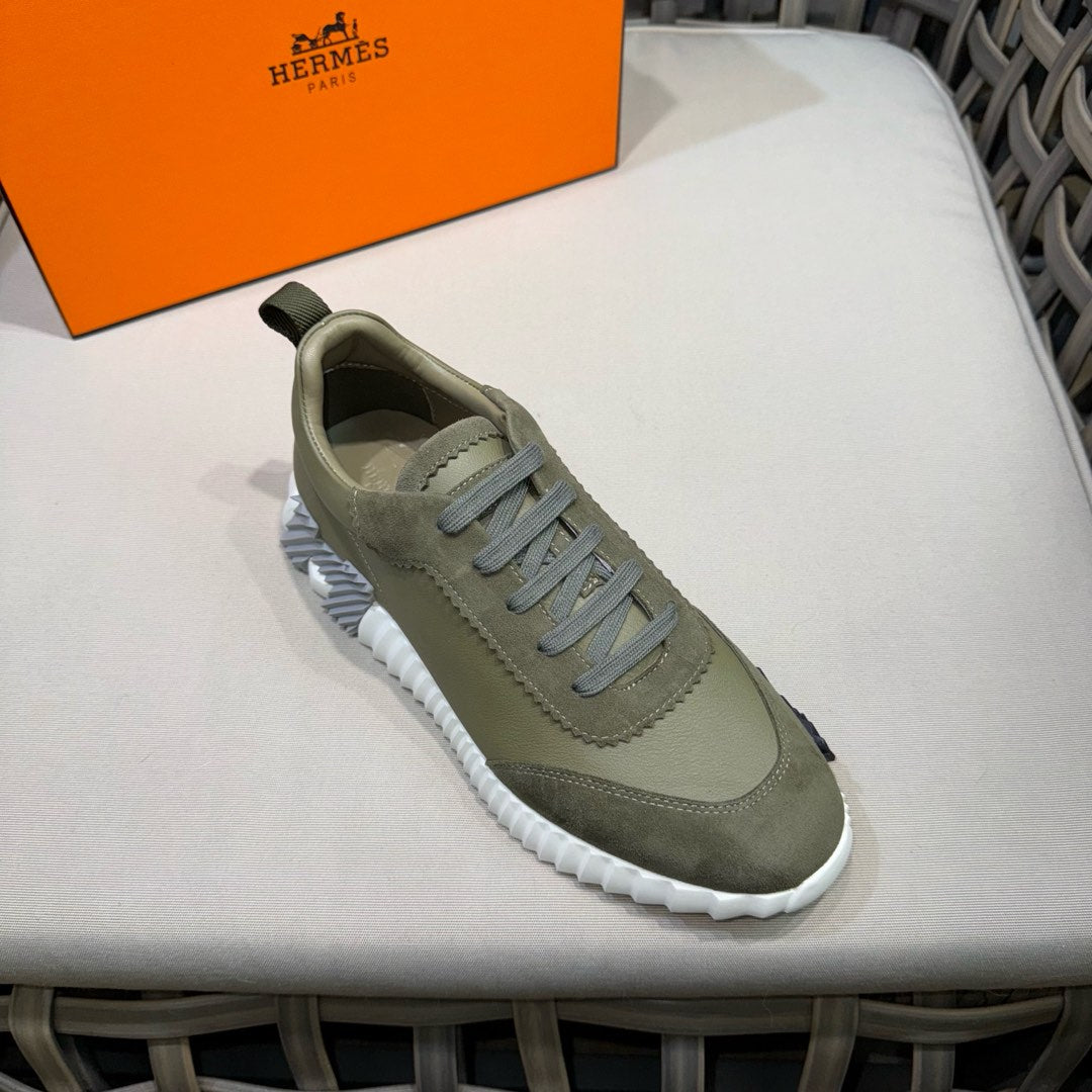 HM Men's Bouncing Sneaker Moss Green Calfskin Suede