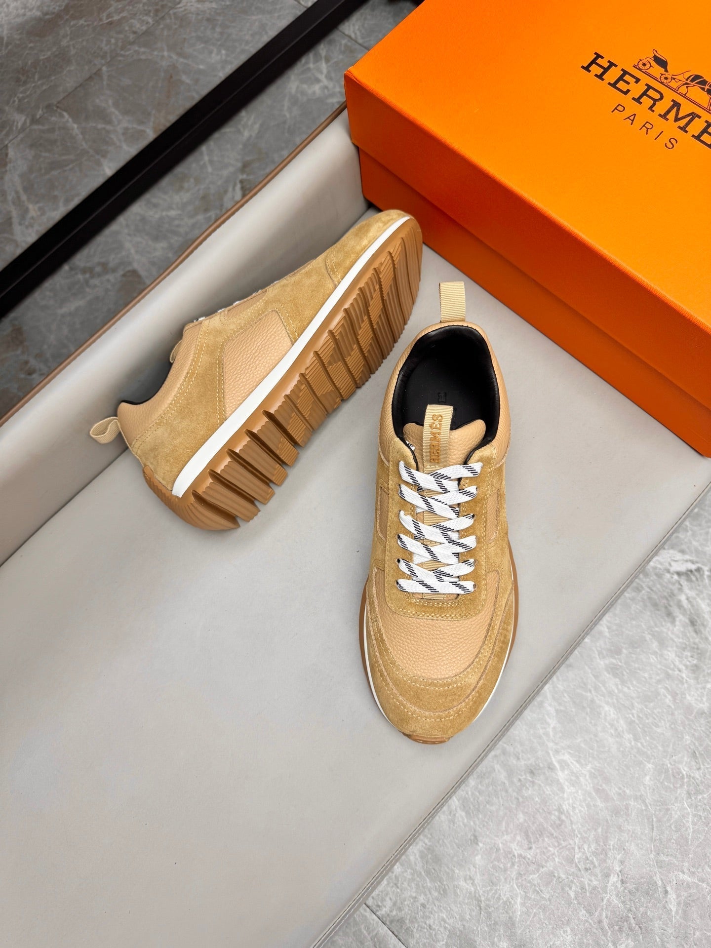 HM Men's Sneaker Beige Calfskin Suede 602058