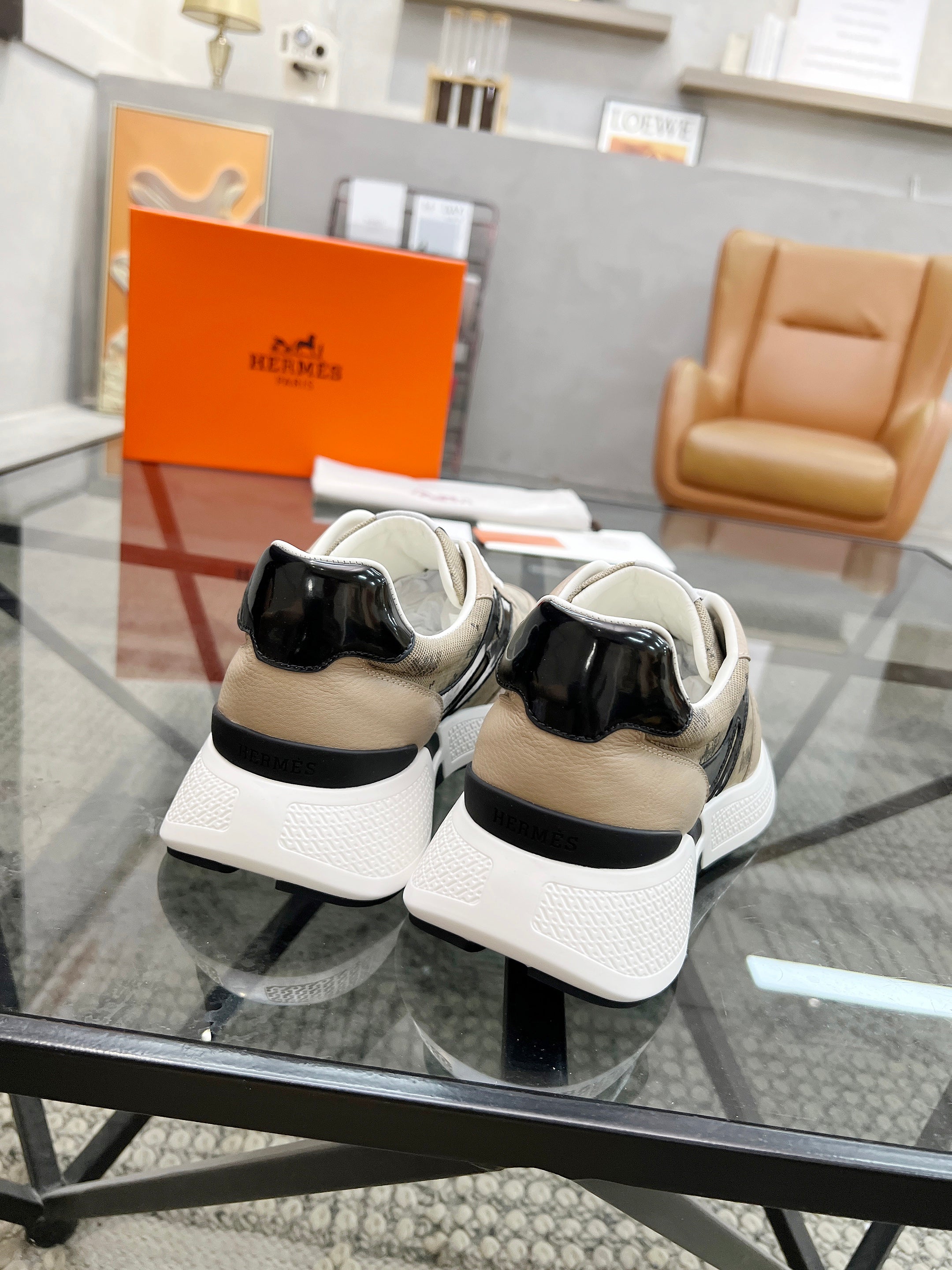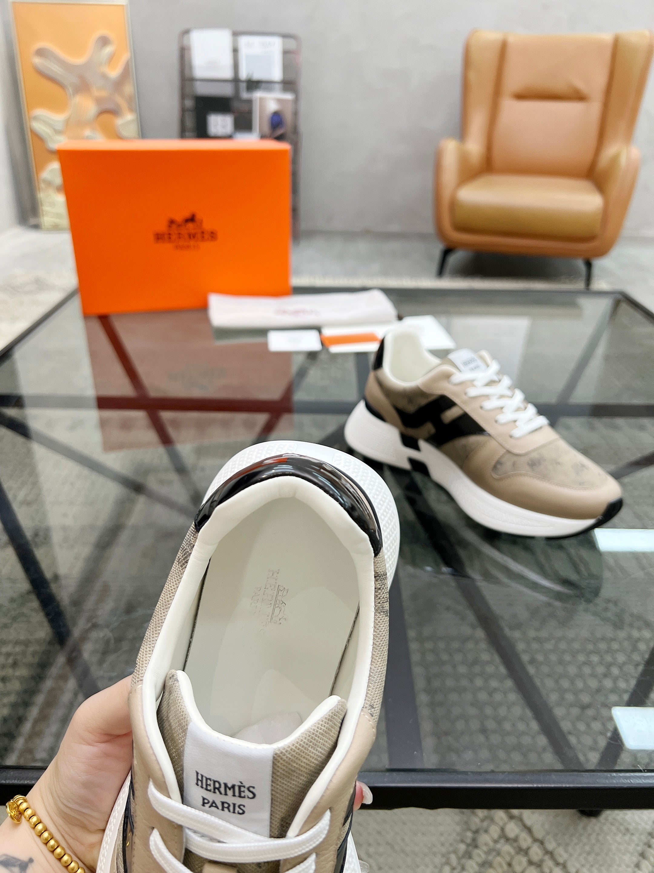 HM Men's Sneaker Beige Cowhide Fabric 603857