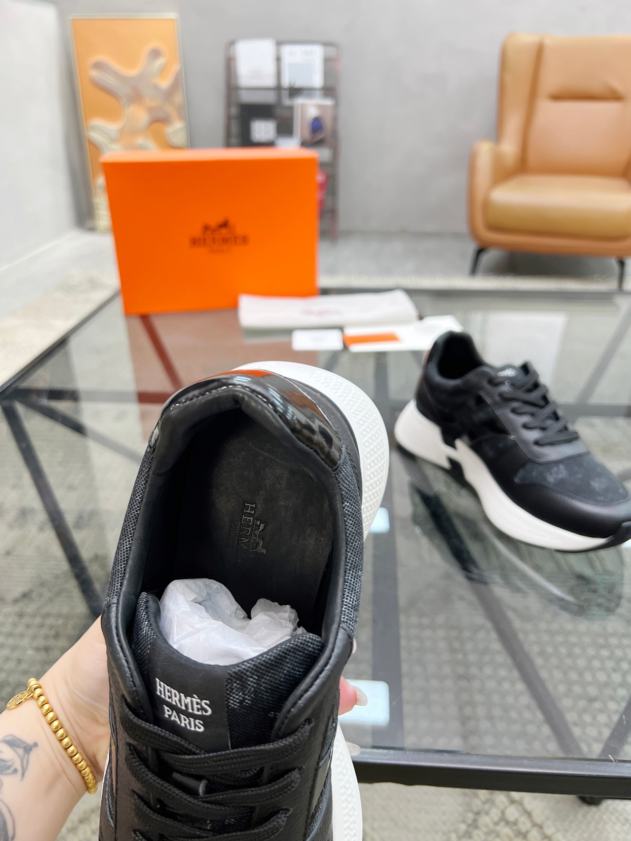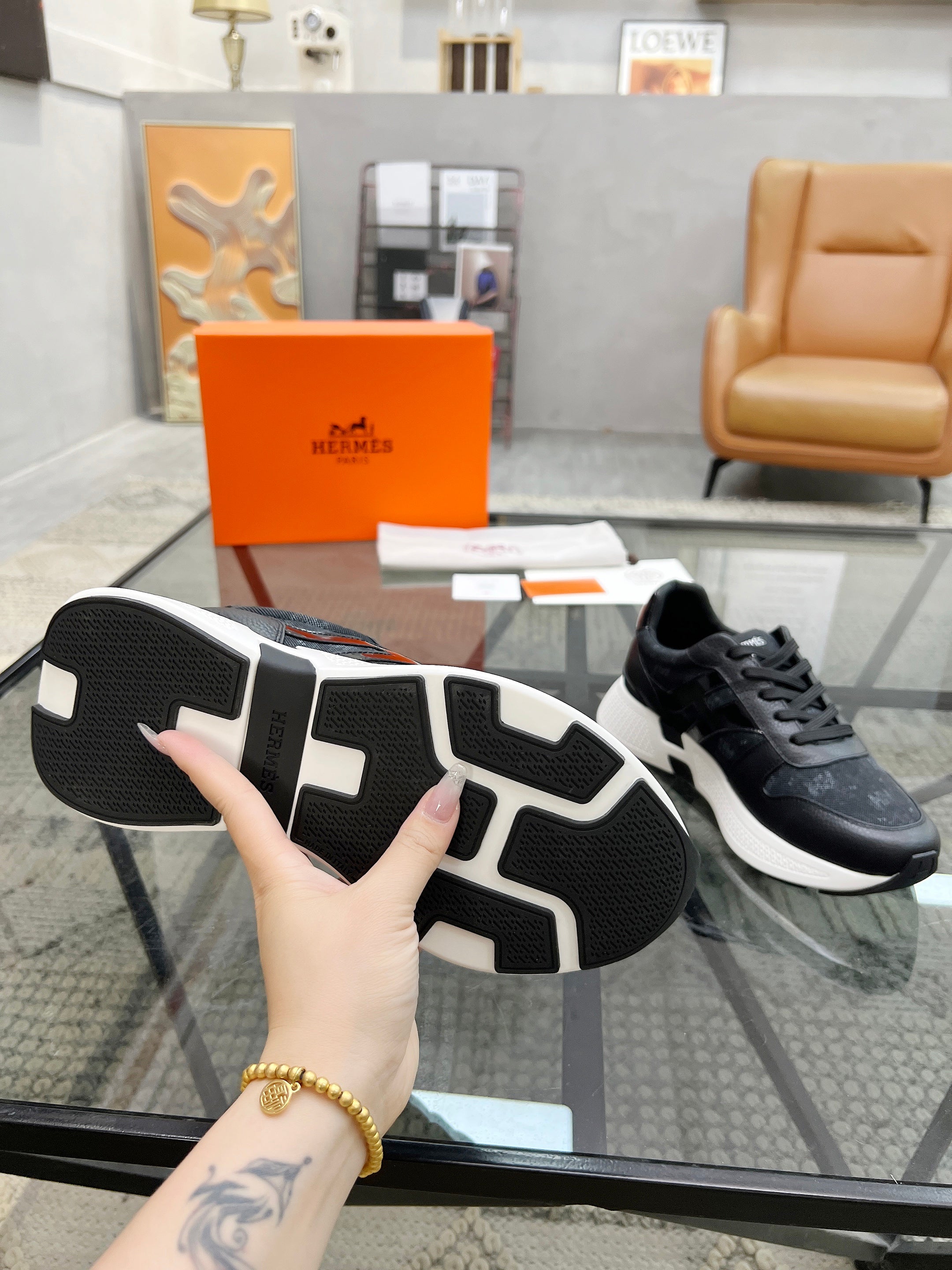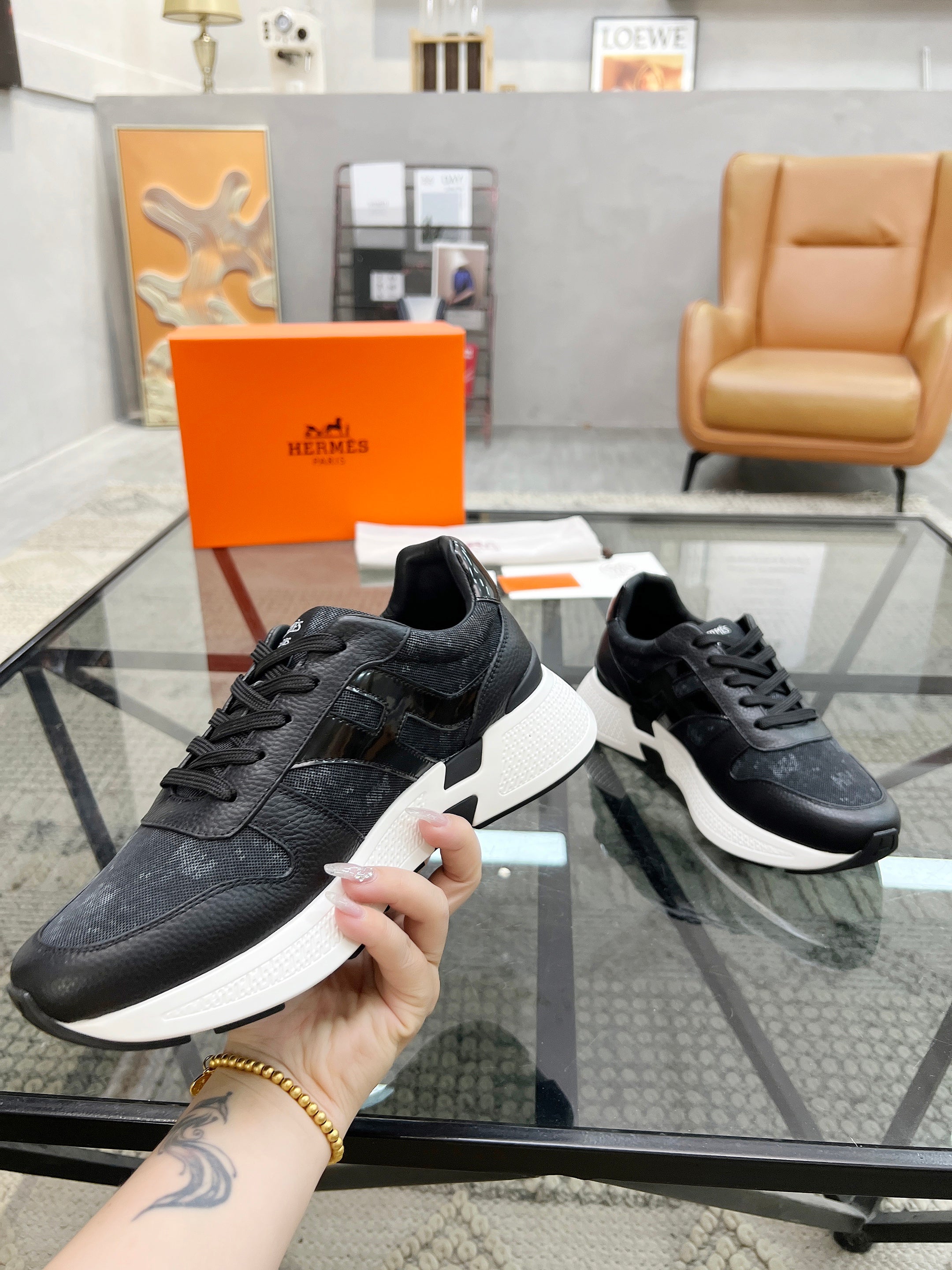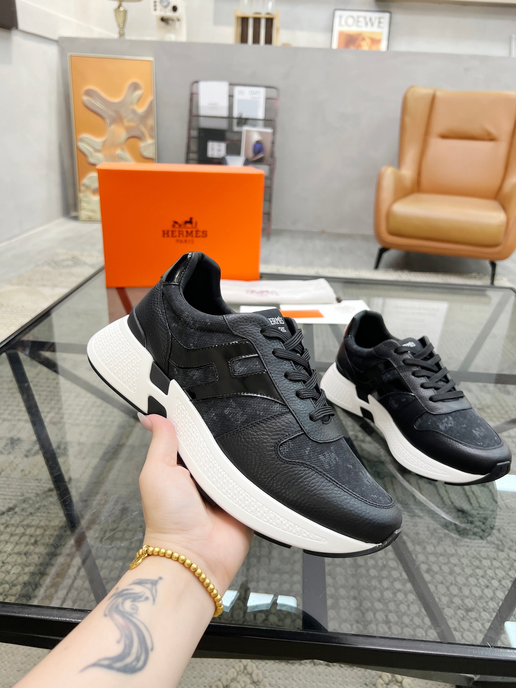HM Men's Sneaker Black Cowhide Fabric 603852