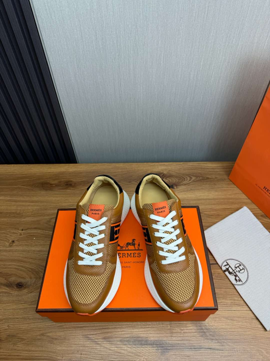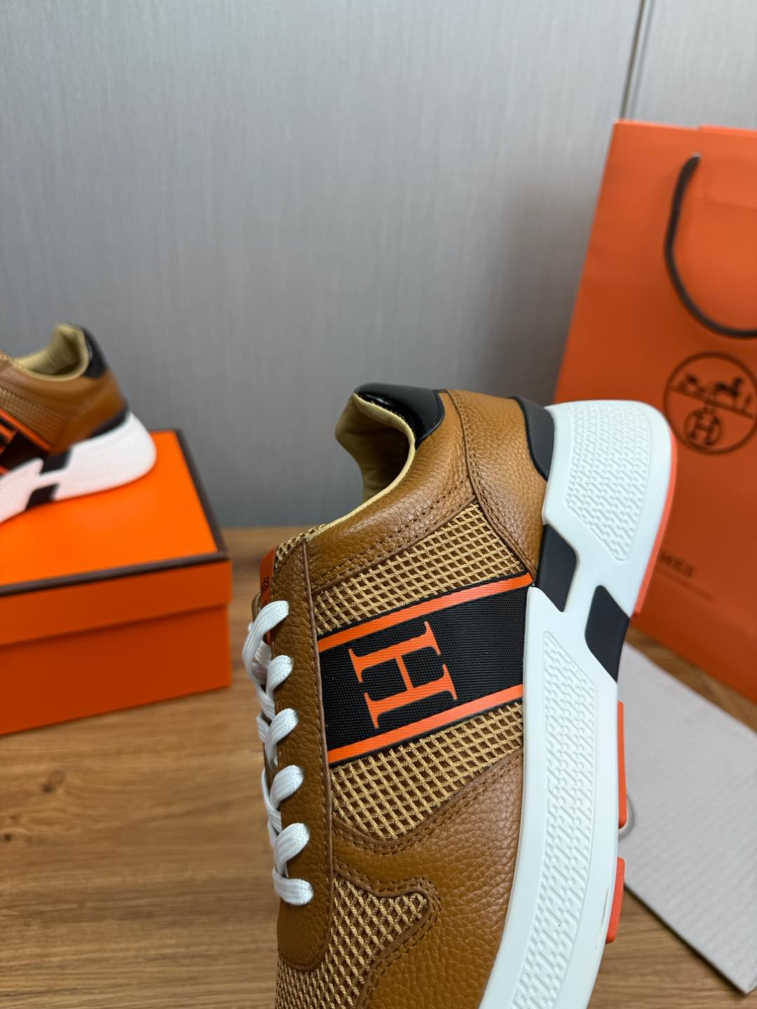 HM Men's Sneaker Brown Mesh Cowhide 519229