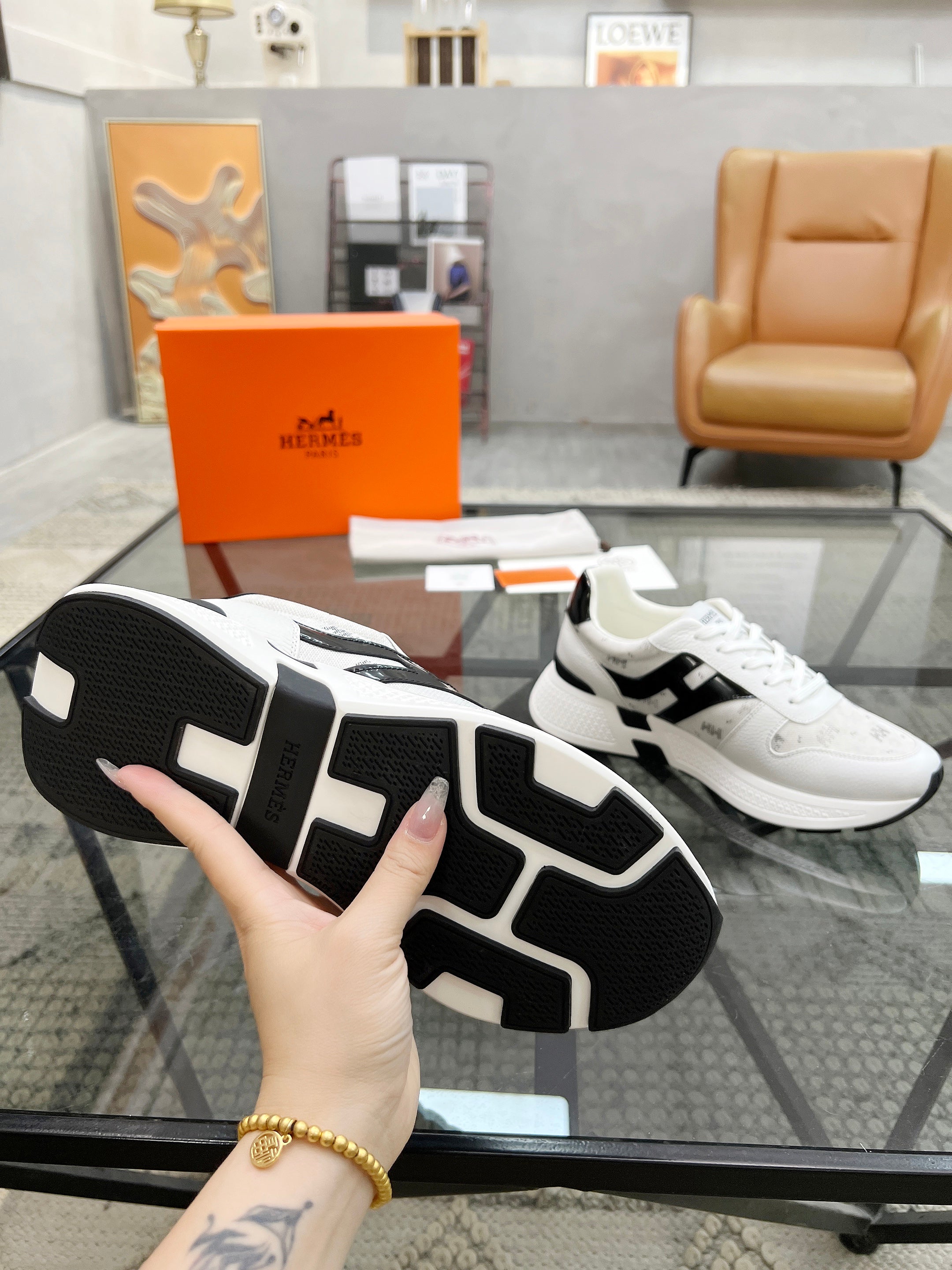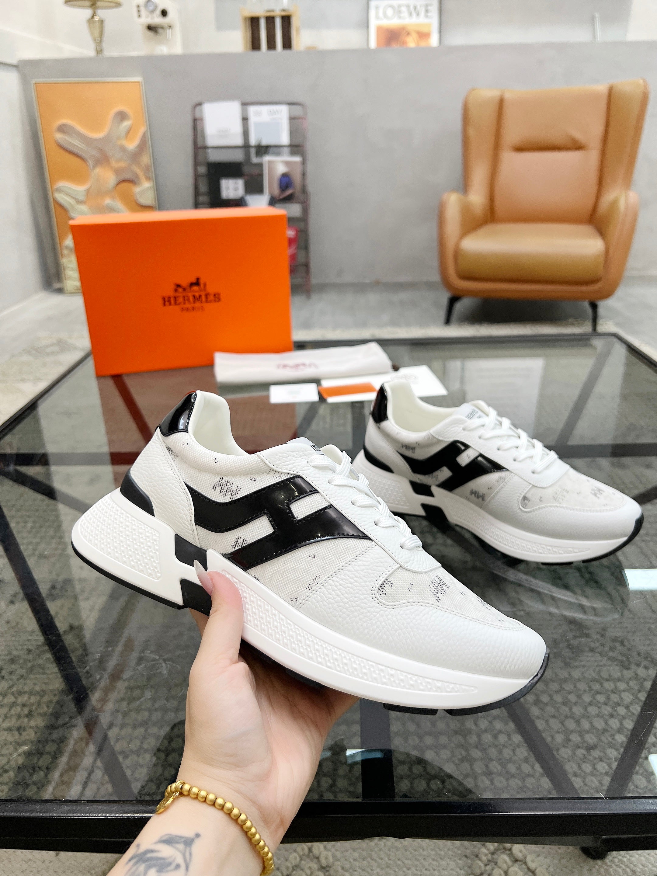 HM Men's Sneaker White Cowhide Fabric 603855