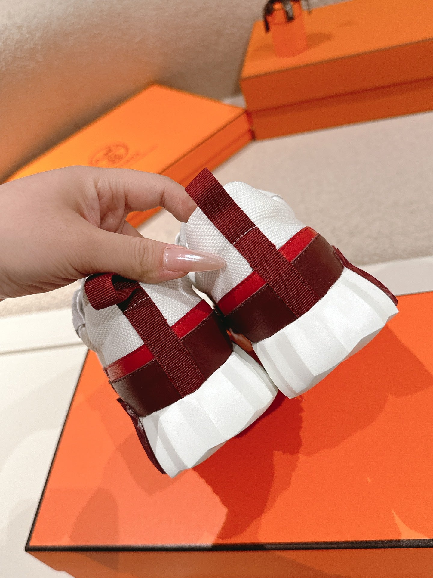 HM Men's Sneaker White Red Goatskin Suede 578952
