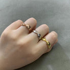 1. Using a length of string or ribbon, wrap it around the base of your finger. To ensure the ring fits comfortably, we suggest measuring your knuckle as well. We recommend selecting a size that will slide on and off your finger easily.