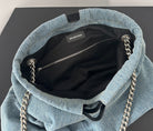 CRUSH LARGE TOTE BAG 46 IN BLUE WASHED DENIM SILVER HARDWARE