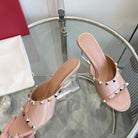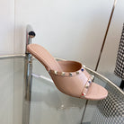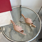 80mm Rockstud Patent Rose Cannelle Leather Mules