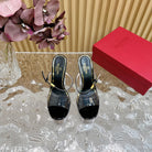 HIGH HEEL SANDAL 14CM IN BLACK CALFSKIN AND TRANSPARENT PVC