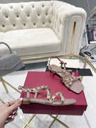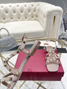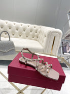 Rockstud 1cm Square Toe Rose Cannelle Leather Sandals