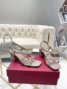 Rockstud 6cm Square Toe Rose Cannelle Leather Sandals