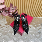 ROCKSTUD MIRROR-EFFECT PUMP WITH MATCHING STRAPS AND STUDS 95 MM BLACK CALFSKIN AND MESH