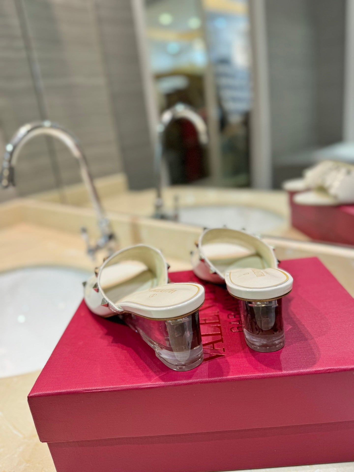 ROCKSTUD MULE SANDALS WITH TRANSPARENT HEEL IN WHITE CALFSKIN