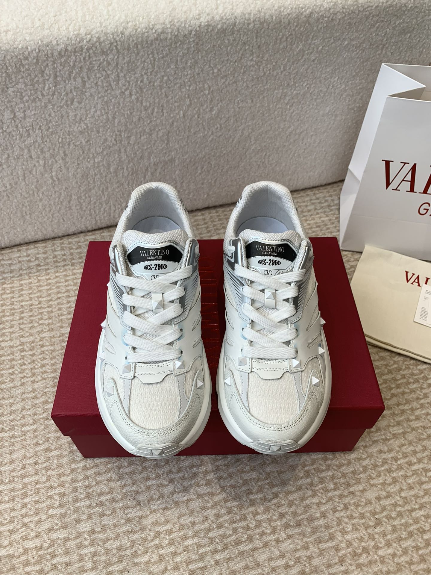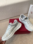 Valentino Sneaker 50mm In White Mix Grey Blue Mesh Fabric And Cowhide 814274
