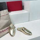 VLogo Signature Gold Leather mules