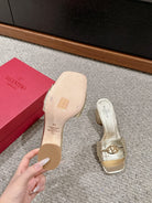 VLOGO SIGNATURE SLIDE SANDAL 60MM IN GOLD CALFSKIN