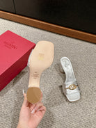 VLOGO SIGNATURE SLIDE SANDAL 60MM IN SILVER CALFSKIN