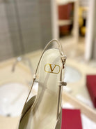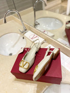 VLOGO WHITE LEATHER SLINGBACK FLATS