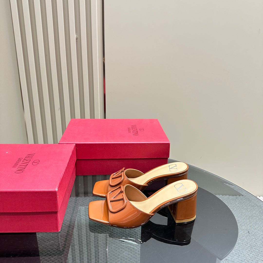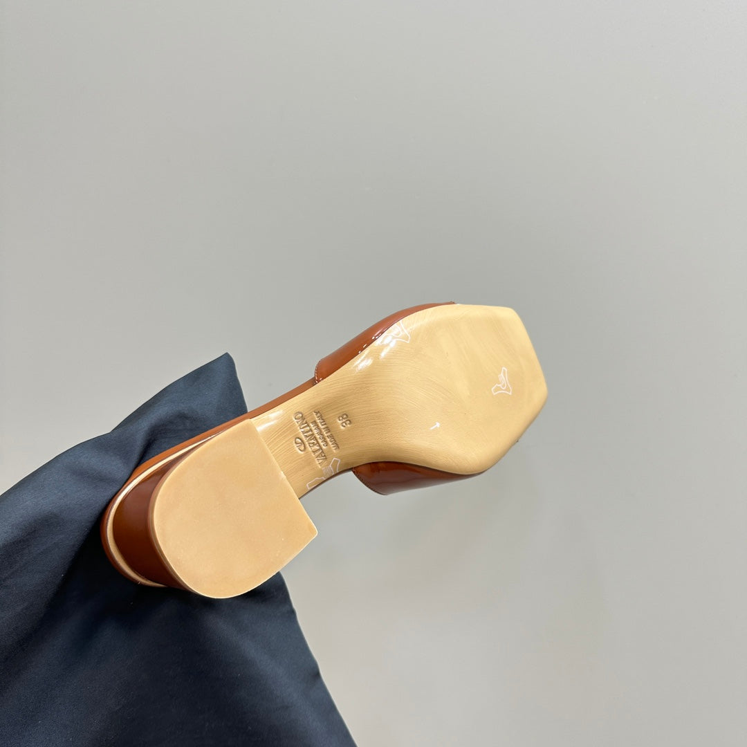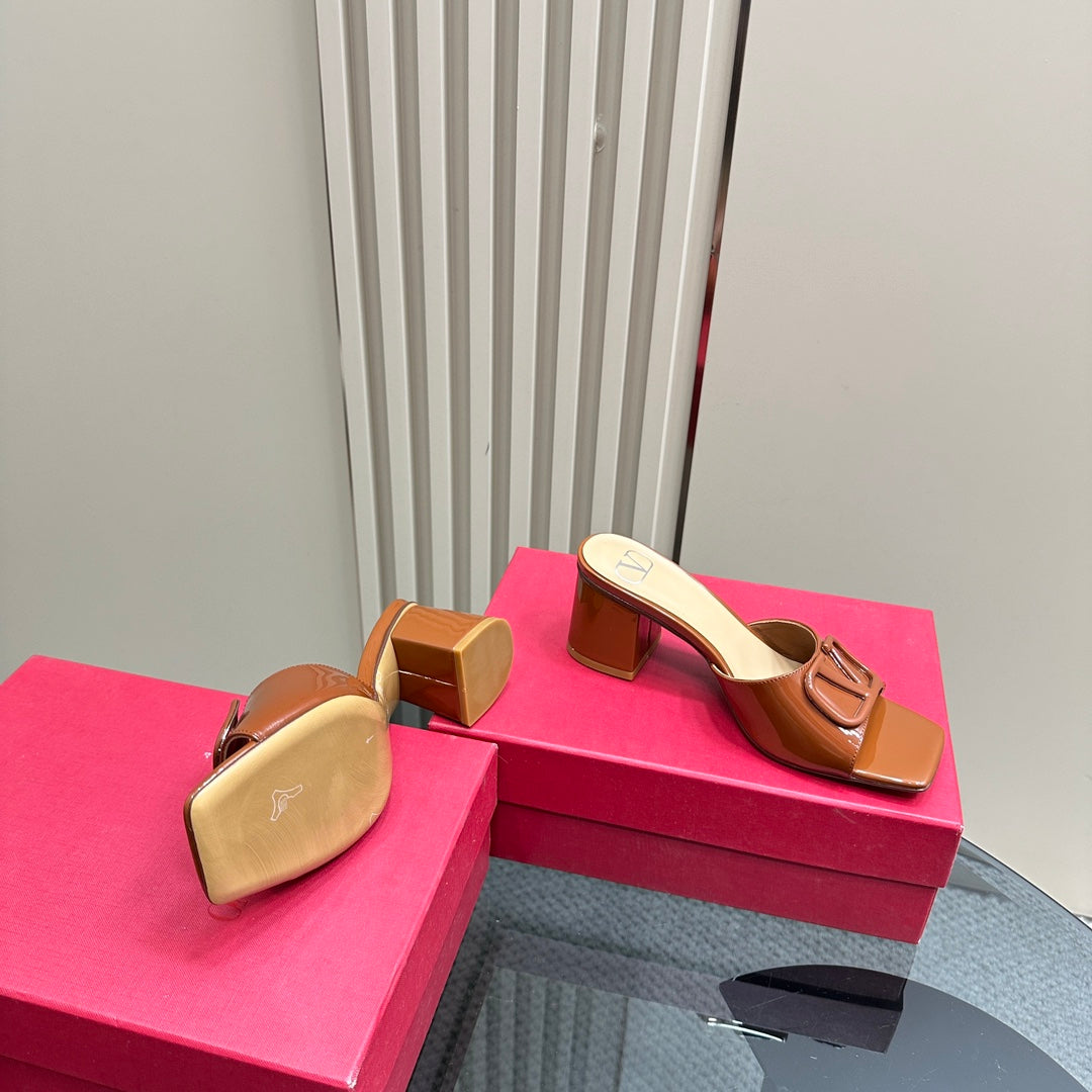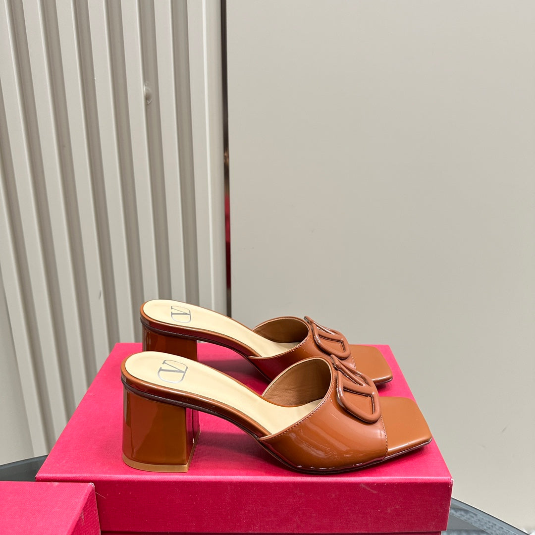 Vogo Signature High Shine Open Toe Sandals In Brown Glossy Lambskin 839825