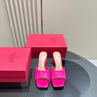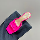 Vogo Signature High Shine Open Toe Sandals In Dark Lotus Pink Glossy Lambskin 839823