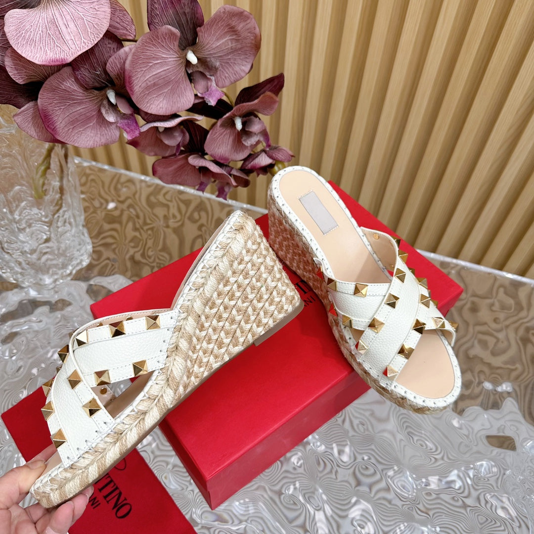 Rockstud Crisscross Espadrilles 80mm Sandal Wedges White