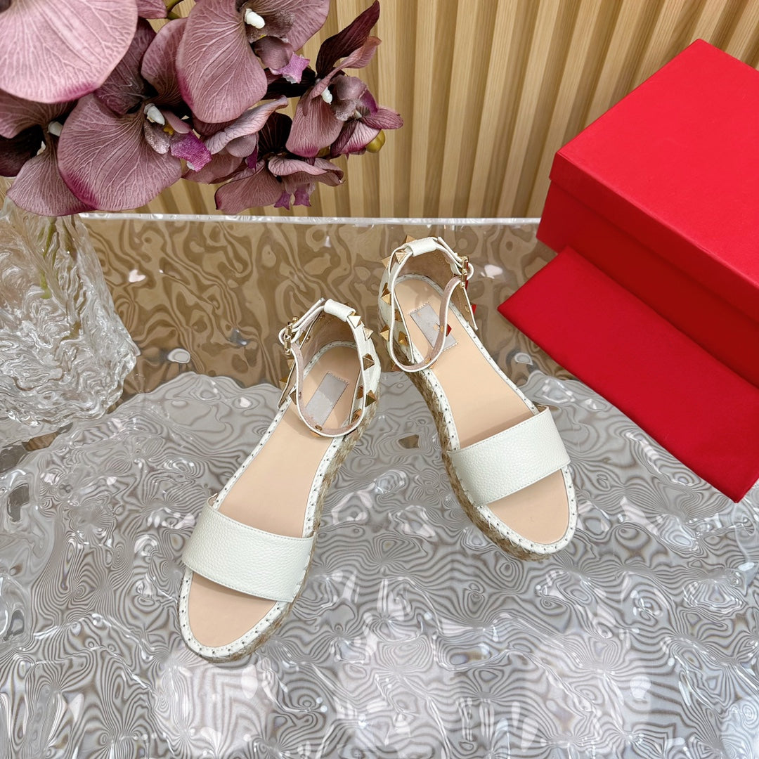 Rockstud Espadrille 45mm White leather sandals