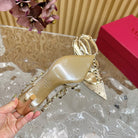 ROCKSTUD MIRROR-EFFECT PUMP WITH MATCHING STRAPS AND STUDS 95 MM GOLD CALFSKIN AND MESH