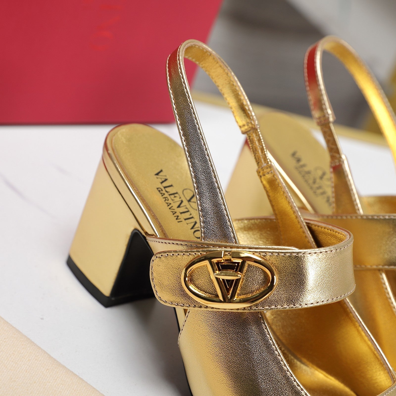 The Bold Edition Vlogo Slingback 65 Deep Mouth Half Drag Heels Gold Calfskin