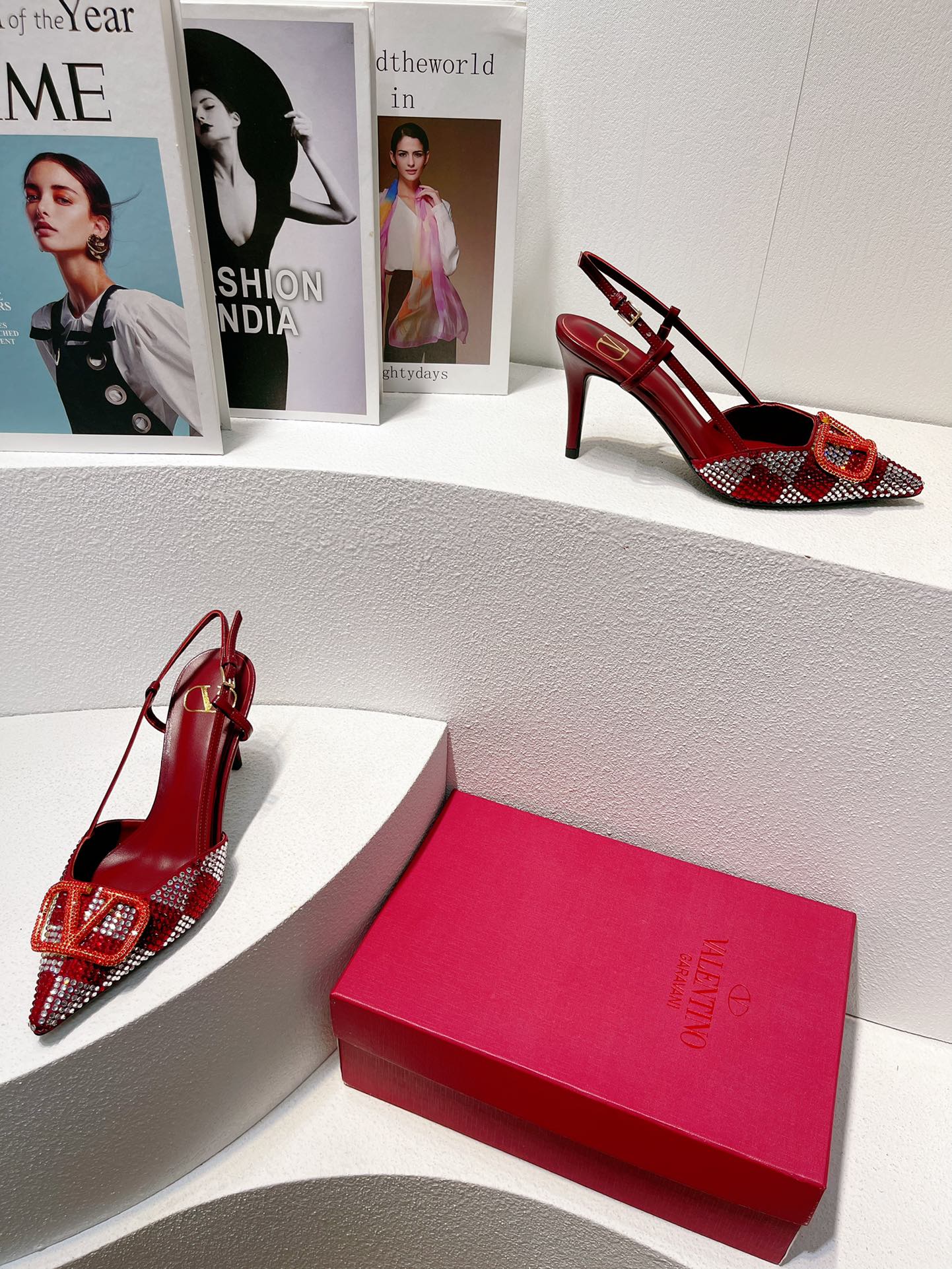 VT High Heeled Slingbacks Ruby Red Sheepskin 292825