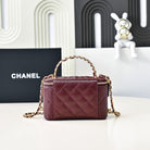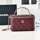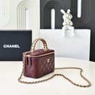 CC 24A Vanity Top Handle 16cm Burgundy Grained Calfskin Gold Hardware
