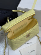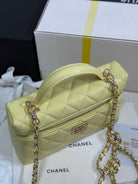 CC 25P Vanity Case 19.5cm Yellow Pastel Calfskin Heart Rhinestone 243607