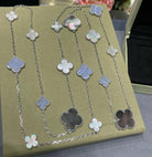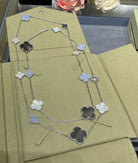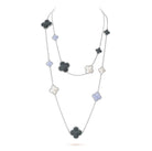 CLOVER 16 MOTIF CHALCEDONY MOP SILVER NECKLACE