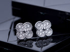 CLOVER SILVER DIAMOND STUD EARRINGS