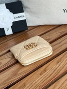 cc 19 zipped coin purse 11cm cream lambskin gold hardware
